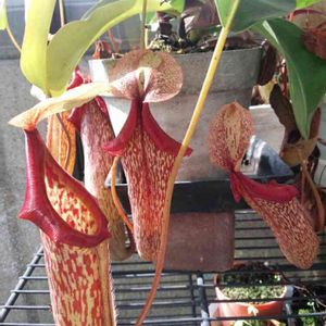 ネペンテス ミランダの全身画像です。 春にはもっと大きくなってるだろうから、記念撮影! ただ毎日、、、私は真っ赤なレディラックを見てるから渋い赤ってのが地味に見えたりしてしまいます。 アニマル柄は最高だけどね〜
