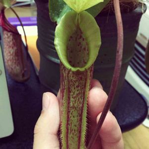 ネペンテス ミランダの1番可愛いところは真っ赤な襟なんだけど、3番目に可愛いのはフタの模様なんですよね。 ウツボカズラは無地の子も多いけど、はっきりした柄が一枚の花弁のように美しいのはミランダちゃんが私の中では1番💕 (*^^*)綺麗でしょ?
