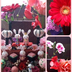 ~🌿 ガーベラ 🌿~ 花言葉 💖希望 💖前向き 🌹バラ& 💞ナデシコ & 💖スイートピー 🏷️毎月2日はスヌーピーの日 🐶スヌーピーも 3月は🎎雛段に‥ 🏷️チームスヌー 会員番号 No.15 ふじです 🏷️花咲く乙女たち♡ 🏷️コラージュして遊ぼ♡ 🏷️一期一会のお花♡ 参加しま~す