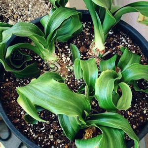 万年青(獅子系品種不明) これでラストです😅 こちらもご厚意で頂いた万年青です。 以前から獅子系も欲しかったので嬉しいですね😊 もっとクルンクルンしてくれる様、大事に育てたいと思います👍 しかし、おかげでウチのスペースも結構ヤバいです😅 でも、色々な方のご厚意が嬉しいイベントでした! 植物好きな方は皆良い人だー😊
