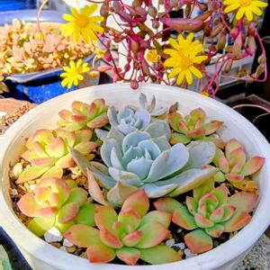 散歩してたら(少しずつ時間を増やして 今は30分🚶‍♀️)、最近は体調よかったけども、何か考え事した日の夜は、背中が熱くて朝まで眠れないことがたまにあります💦 数日前に受けた人間ドックは、大きな異常はありませんでした✌️ 元々 低体重な上、体重がずっと減っている(去年の人間ドックより2キロ減) ので、一応 腫瘍マーカー(がん)の検査も追加でやってもらいましたが、A判定で異常ありませんでした😃 血液検査はすごくよかったようで、貧血も今 数値が改善して鉄剤中止になって飲んでないけど、大丈夫だったようです🙆‍♀️ (ギリギリなのかもしれないけど) ただ、骨密度🦴が低くなってて、整形で相談してみた方がいいかもと言われちゃいました🥺 YouTube見たら、骨密度ばかり目が行きがちだけど、骨を強くする💪ことも重要で、サバの缶詰、小松菜、カブの葉、大豆、モロヘイヤが、牛乳より効果があると言ってました。 いろいろ興味深い内容だったけど、まだ少ししか見られてないので、また見よっと。 病院🏥が合併し、人間ドックの特典 温泉♨️と懐石料理の無料券 どうなるかなと思ってたけど、懐石料理がお膳に変わっちゃったけど、今年ももらえました🙌 メニューにあるお膳なので、予約なしで行けるようになった点は助かるかな。 婦人科でも相談したけど、食べられる時(夕食でも)にしっかり食べる、時間を置いて追加で食べるのも🆗 あと10キロぐらい太っても大丈夫らしいので、どんどん増えても気にしなくていいと。 内科では、筋肉が痩せ細ったらいけないから、タンパク質を摂りなさいと。 「卵🥚は少ない量で栄養価が高いから、卵を食べなさい。コレステロール値も高くないので、卵を1日に2~3個食べてもいいから」と言われました。 毎朝 1個食べてるから、昼にももう1個食べるようにしてます。 今日の写真📷は・・・ 📕1枚め うさぎさん🪴オールスターズ。 こちらは順調。 後ろ⬆️ 月兎耳ちゃん。 モノが落下して 一部 かわいそうな姿に🙏 左下↙️ 月兎耳ちゃんの葉挿し。 その横⬇️ 野うさぎちゃん&ビアホップちゃん。 わりと同じ環境かなと同居させてます。野うさぎちゃん、少なくなってたけど、復活してます✌️ その横↘️ ジャイアント ラビットちゃんの葉挿し(もう1鉢 ジャイアントラビットちゃんいたけど、写し忘れ)。 1番下⬇️ 福兎耳ちゃん。 このコは苦手で、枯れ枯れになったけど、少しずつ復活中。 📕2枚め キキョウ アストラちゃん。 今は枯れてきてるけど、この写真 紅葉っぽくて きれいじゃないですか♡? 📕3枚め ラケナリア ヴィリディフローラちゃん。 今年はめちゃくちゃ葉っぱたくさん出てます🌿✨ 翡翠(ヒスイ)色の花が咲くのが楽しみ🩵 みどりのまとめ あります。 📕4枚め ムスカリちゃん。 まだ芽が出てない頃、上に鉢が乗ってて真ん中あたりは黄ニラみたいな芽が出てたけど、今は緑に復活🌱 花が楽しみ。 こちらも みどりのまとめ あります♡ 📕5枚め コルジリネ レッドスターちゃんを植えてるミニ花壇を多肉花壇(ポイポイ鉢)にしてました(終了してるけど、みどりのまとめ あります)。 ルビネちゃんはとりあえずそのままなんですが、どんどん広がってきてます💦 (数年後 外壁塗装に備え、いずれ 全部抜く予定。ルビネちゃん どうしようかなぁ) いよいよ最強寒波到来🌬️➰らしいですね。 仕事後 寒さに弱いコは玄関に取り込み、外出から帰り 娘に手伝ってもらって、庭に不織布を。 不織布に入りきらないコは、娘が「クリスマスソング🎅歌ってエールを送ったから大丈夫」だそうな😆 すごく冷え込むので、暖かくしてお過ごしくださいね。