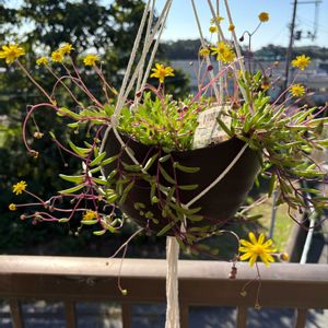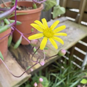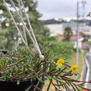〜ルビーネックレス〜 可愛らしい菊のような花が咲き始めました ちっちゃいけれど元気いっぱい咲いています キク科 オトンナ属 花言葉「健やかな成長」「青春の思い出」「豊富」 🏷️ニコニコ日曜日 🏷️日曜ビタミンカラー♪