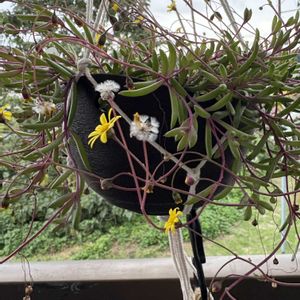 ルビーネックレスのお花と、多肉植物色々…黄色のお花で今日も元気を頂きます✨️💛💚💛💚💛🌱