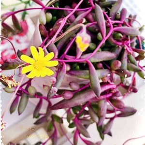 〝ルビーネックレスの花〟 小さくて黄色の花が 咲きました。 朝よりも花びらが丸まって くるんとしています。