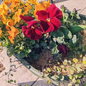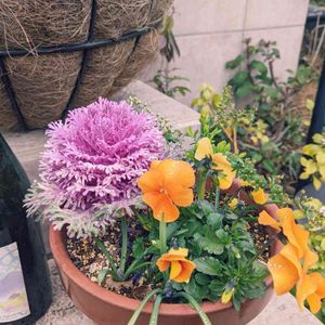 ❤️寄植え❤️ ユキヤナギ ビオラ 葉牡丹 ムスカリ 葉牡丹がもう少し粘ってほしいところ😅 ユキヤナギは挿し木で増やしたもの。 低木の挿し木管理は単体でやると大変だけど、寄植えにしちゃえば一石二鳥😊❤️