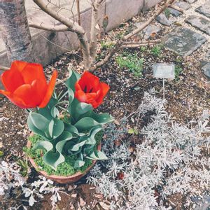 こちらもモリモリしてきて、 チューリップも出てきました🥰 寄植え苦手だけど、 ワイヤープランツがいい感じ。 色の組み合わせも気に入ってる。