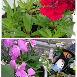 pick No 2044 こんにちは☀🥵 陽射しが降り注ぎ今日からまた酷暑が始まる😰 午前8時過ぎに写したハジープランター、鉢、発泡スチロール箱植えからピックアップ 今日は夕方🌆から孫ベビーのお世話に泊まり掛けで外出を予定 コメント下さる方に既読だけで🙇 🏷今日の お花 はナデシコなのね 過去写真から捜してニ色 1⃣ナデシコニ色撮影日時は’19.7/18は赤色、ピンク色は10/21 長く居てくれたけど、今は居ません 2⃣ ポーチュラカニ色 3⃣ゼフィランサス ナガエコミカンソウがここにもまだ居ました 4⃣観葉植物 斑入りが薄れてきてる、パンジー、まだ生存してる徒長の子 オレンジの📛は別の株ので この子ではありません