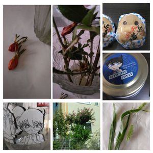 pick No2048 こんにちは☀🥵 横浜市東部地域から孫ベビーにバイバイ👋して朝9時過ぎに帰宅 アラートが発令してる中 花パトした メマツヨイクサの切り枝にまたデカいサイズの虫がいた、小さな虫と共に🧐😡ビニール袋から逃げた? どこからやって来た? 枝毎処分袋に容れた 🏷今日のお花 クチナシ山梔子は知人宅から貰いました。 🏷コラージュ仲間たち 花パトではルコウソウ朝顔の赤色蕾がようやく見れました が三日間留守中葉が茶色になってしまった🤣 蔓おろししたくても絡まり出来ないわ 写真説明 ↖️とその横はクチナシの実を知人宅から貰った時の姿過去写真’24.12/22 ↗️ お嫁ちゃんの友達が帰省した時に買って来てくれた島根県方面の和菓子 ひょっとこの形の白餡和菓子 お嫁ちゃん優しい言葉、お義父さん、お義母さんの分と三男の分って云ってくれたけど、三男食べないからと返事したら、お義母さん二個食べて。と😂 義理の娘だけど嬉しいな ➡️息子夫婦宅には沢山名探偵コナングッズ在りすぎ🧐🥰 ↘️息子夫婦宅外には猫じゃらしが生えてました ⬇外出先、ご近所さんお息子夫婦宅向かいのお庭にサルスベリが咲いてました ↙️名探偵コナングッズ硝子瓶の柄