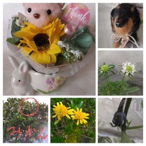pick No 2063 三回目のアカウント登録名ハジーで投稿して777を迎えて、どんな写真が出るかな?と昨日花友さんからチョッピリ圧力感じたけど 花パト早朝にして綺麗に咲いた花は無く😂タンスの上で飾ってる造花と 3年前にGSを止めた花友さんからハジーの写真だけを見て作成してくれたぬいぐるみをコラージュしてみましたょ 1⃣造花とハジー発泡スチロール植えプランター植えのスカオビオサの白い花🍆の実ベビー 裏手の🏡に咲いてる黄色い花と🍊の実 2⃣ 和綿の花もう直ぐ咲くかな? デュランタの実?種? 朝顔蕾 3⃣ ルコウソウの白色だけのプランター植えに蕾も白い🎶 もう直ぐ咲くかな? ルコウソウは有毒物質在ります、 犬、猫、子供は要注意 種子を含む、植物全てアルカロイドが含まれている ルコウソウ白色だけの種を春に購入出来ました年々ミックスされた種からは白色が翌年の分が採れなくなり、ネットショッピングから買えて良かった 別のプランター植えには赤色とピンク色が前年からのを蒔きました まだまだ咲かないけど😃 フウセンカズラを移植したら、弱ってしまった 来年以降花も種もみれないよー 🤣