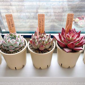 今朝 エケベリ屋さんから当選苗が届きました🎁 西から東にようこそ?急に寒いけど頑張って? 今回初めて応募したから当選確率高かったんだな〜きっと 可愛い子たちがベランダ組に仲間入りです🌟 ♡デレッセーナ×ラウリンゼ ♡メキシコポルデンシス×東雲 ♡メキシコポルデンシス×コロラータ アテマハック(艶葉) ♡沙羅姫牡丹×コロラータ アテマハック いいな〜好きだな〜と思っていた苗を片親に持っている子たちが来て密かに喜んでます🥰🍀 (おまけ苗) ♡コロラータ タパルパ×ブラックサバス 開けたらおまけ苗も入っていてびっくりしました👀可憐な可愛い子🫶 まだまだ多肉初心者なのでドキドキするけど、頑張る💪