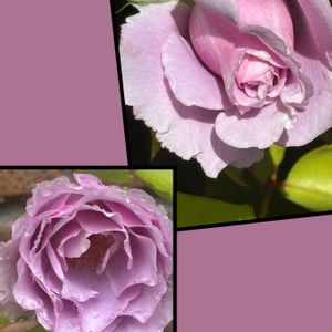 🌹今春開花第14〜17号 朝からよく降りました☂️😭 ☂️の中、咲いていた今日のバラさん達 左上から時計回りに ・14号レイニーブルー1号 何輪か開いていました♩ ☂️の日だけど、可愛く咲くのね💕 去年の初開花もこんな☂️の日でした😌 2023.12出会い ・15号レイニーブルー2号 挿木のレイニーさんも咲きました♩ ・16号ピエールドゥロンサール 女王さまが開いてきました💕 2023.12出会い ・17号ミミエデン 巻き巻きのキュートさん 2024.5出会い
