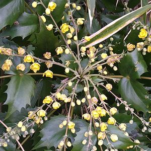 🧡ヒイラギナンテン🧡 ナンテンが咲き始めました! ズームすると…… シンビジウムによく似ているお花です! でも小さな小さな可愛らしいお花の集まりのナンテンです! 我が家の厄除けの🌳樹です! 2023.12.16.📸pic