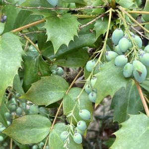 柊南天の実 花は黄色だったのに、実は不思議な色に🩵 春色⁇