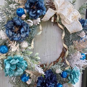 この前お出かけしたレストランに有った素敵なリース💙✨️💙✨️ 造花だけど( *´艸`) 🏷️素敵な水曜日 🏷️水曜日は水色 🏷️青い花でHappy Winter'22-'23 🏷️青い花で忘年会2022
