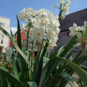 3/29㈬② さっちゃん発信 🏷白い水曜日♡ 水仙 ペーパーホワイト 青空に映えて清々しいです🤍🤍🤍☺️