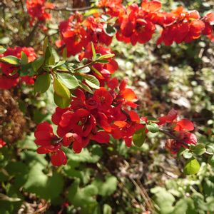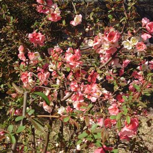3/22㈬④ 今日のお花 ボケ 向島百花園には昨日アップした真っ赤な木瓜の他に、ピンクと白が混ざった木瓜、真っ白な木瓜も咲いていて綺麗でした〜😊💕🤍💕🤍