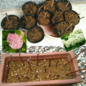 アナベルの(白)と(ピンク)挿し木を植え替えた。🌱が出だしたら里山に移植します。里山にアジサイ園🌸🌸😚