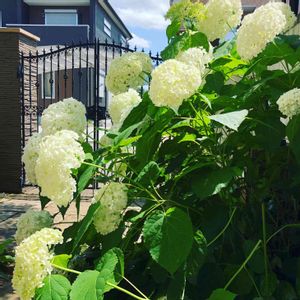 昨年植えたアナベルがたくさん咲きました〜! 頭でっかちなので、風が吹くたびに ぐらんぐらんしてます かわいいな😙
