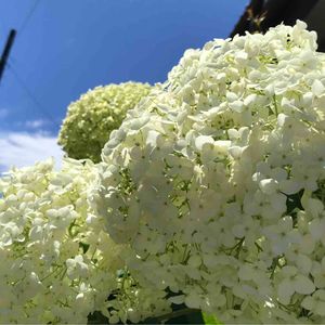 キュンキュン乙女倶楽部活動 紫陽花祭りその4 青空に向かってアナベルモリモリ〜👏✨ 雨に打たれ半分は途中で折れてしまった わが家のアナベル😭 あるあるですよね〜😓 それでも次々と青空に向かって咲いていくのが、アナベルなのです٩(ˊᗜˋ*)وファイト!!