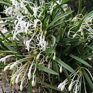 フウラン ①4月末にコルク板に水苔、麻紐で縛り着けたらたくさん咲いてくれました。 ②お隣さんの太い槇の🌳で生き生き。 太い根っこが上へ上へ2m。 「生きた木に着けたフウランは植え替えしなくても勝手に咲いてくれる」と教えてくれますが、我が家の槇の木はまだヒョロヒョロ😵