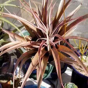 カピタータレッドさん。購入時は柔らかかった葉っぱもピンピンになりました(*^^*)水が大好きな感じ。