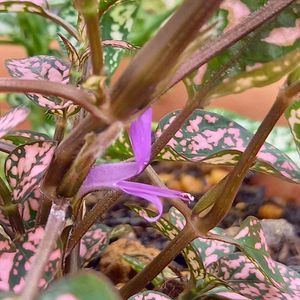 ヒポエステスに💜お花が咲くのを 知りませんでした😅 てっきり、葉を楽しむ植物だと・・・ 意外にかわいい花でした😍