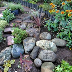 ドライリバーを作るには川底にする小さめの石が足りなかった…。 将来捨てづらい資材を買うのは主義に反するのでゴツゴツじゃないけど川石ロックガーデンもどきに変更。 まぁまぁの自己満 もう少し高さや足場を調整して、さて、何を植えようかな(決めとらんのかい!)