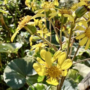 おはようございます٩(๑❛ᴗ❛๑)۶ 今日は金曜日 石蕗の花が咲いて来ました🌼 庭の彩り 葉っぱも斑入り 一年通して楽しめます🤍💚💛 ③散歩道に あらっ まだ成る⁉︎ ヘチマ 大きくは無理かなぁ ④畑の菊芋 お芋が出来てきました♪ ⑤醤油漬け 味醂と料理酒も入れ漬けたのが 家では1番 うれる😙 ご飯に合う。イヌリンが糖の代謝 を助けるとか…甘酢漬けも😋 🏷️黄色い金曜日 参加します♪