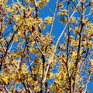 今日のお花「マンサク」🌿💛 満開のマンサクの花が青空に映えていました🤗💕 (昨年3月お出かけ先で) 🏷煌めきの金曜日 🏷金曜キラキラ 🏷花の金曜日 🏷黄色い金曜日 に参加させていただきます🙇