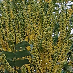 お出かけ先に見たことの無いお花が咲いていました🌿💛 AI は「シナヒイラギナンテン」と言っています🤔 🏷金曜日の蕾たち 🏷黄金色の金曜日 🏷黄色い金曜日 に参加させていただきます🙇