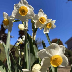 水仙の季節ね✨ 蕾もたくさんです😃🎶 『Yuming Chord』 ラジオを流しながらパチリ📸✨ 一曲目が タック&パティの【上を向いて歩こう】 涙出ちゃった💧 🏷青い空 🏷黄色い金曜日 🏷金曜日の蕾たち 🏷幸せの黄色いお花 🏷ユーミンつながり 🏷平和を願う🕊 📸11:11