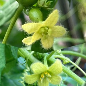 こんにちは😃 ①オキナワスズメウリの花 黄色の花で、全体に短毛の様な毛が沢山生えてます😊 ②③ まだまだだと思っていたら、 立派な実が出来てました😄 ④アサガオ 今朝の、ブルー💙の花 沢山咲いてました😄 ⑤マルバルコウソウ アサガオの脇に、咲いてます😊 🏷️黄色い金曜日 🏷️碧い軌跡 🏷️初めての実 参加します。
