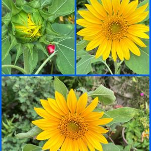 おはようございます😃 私の庭の花たちです😄 ①ミニヒマワリ🌻 双子ちゃんから貰った3苗のうちのひとつ,1番大きく育ちました😁 ②テンニンギクとフクロウ🦉 🏷️幸せを呼ぶフクロウ祭り 参加します。 ③ヒャクニチソウ ダイソーの種からオレンジ🧡の二つの花が咲きました☺️ ④アサガオとオシロイバナ マルバルコウソウもありますね😉 みんな一緒の所にあるのでコラージュしました😊 ⑤バラ🤍 昨日、白薔薇の蕾を発見💡 🏷️金曜日の蕾たち 🏷️金曜ローズショー 🏷️黄色い金曜日 参加します。