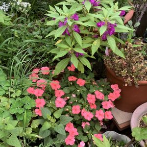 おはようございます😃 私の庭の花たち💐 ①ホウセンカとインパチェンス 綺麗に咲きました😊 ②サマーポインセチア まだ元気❣️ ③メランポジュウムとオオセンナリ オオセンナリは,タネが出来てま すが、久々に花を撮れました☺️ ④ワイヤープランツ ⑤キツネノマゴ どちらも小さな花です😆 🏷️金曜日の蕾たち 🏷️黄色い金曜日 参加します。
