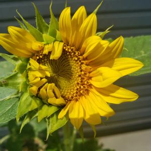 おはようございます! ①向日葵 お庭の🌻ちゃん、咲いてくれましたー🥹🪇 半分顔隠してるところも可愛いです🩷 これから開花ラッシュが来ると思うとワクワクしちゃいます🎶 ②朝顔とソテツ 巨大輪朝顔(暁の混合)💠 まだ葉っぱだけですが、成長スピードが急加速してる🤣👍 ソテツ🌿 何年目か忘れたけど、本当に暑さに強い子💪 緑多めのTHE!夏のお庭🤗です。笑 暑さに負けず今日も頑張りましょうね🔥 .