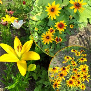 おはようございますᕦ(ò_óˇ)ᕤ 朝は涼しい🙂 若干 気温が下がるのかな⤵️ 今朝の庭 ①家のエキナセア 昨年も何本か咲いて😕 なんか変な〜 花びらが硬くて小さい🥲 ②手前の白い花は昨年も咲いた🤍 昨年種蒔きしたパリダは まだ 苗のまま 咲きそうもない 😂🌼🌼🤍🤍🤍🌱 ③黄色い百合 調べると🔍ユウスゲとか マンシユウキスゲとか? はっきりしないのでユリ属で😕 ④蛇の目草 ハルシャギク 一面に咲いてます😄 増えますね😑畑です😑 ⑤枇杷 ご近所から3回目 私の好物と知ってるので 完熟したのを持って来て頂く😋 🧡💛🧡💛🧡 🏷️黄色い金曜日 参加します♪