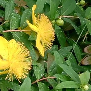 雨に濡れたヒペリカム・カリシナムがキラキラ✨️していました😉 🏷️金曜キラキラ 🏷️黄色い金曜日 🏷️金曜日の蕾たち