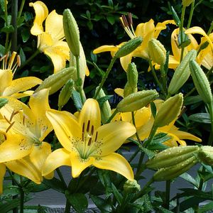 こんばんは😊 ユリ タチアオイ ①②黄色いユリが次々と咲いています🟡 花壇が華やかになりますねぇ😆 ③鮮やかなタチアオイ。 夏が来ますねぇ🏖️