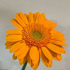 🍮スイーツなカラーリング🍫 優しいカスタードクリーム色の花びらに カラメルソース色の中心 プリンタルトのような色合いのガーベラさん 名札に〈エルフィ〉とありました 葉っぱはチョコレート色にイエローの縁取り 名前確認しそびれ… グーグル先生は「ドラセナ チョコレートクイーン」と教えてくれました。