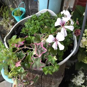 ピンクの差し色がかわいい『アイビーゼラニウム エレガンテ』 グリーン、ホワイト、ピンクと色々入り混じっていて 面白い苗です。