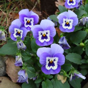 祭りで頂いた「ビオラ」を花壇に植えていただきました。 パチリ お花が4cmより小さかったので「ビオラ」としましたが、 「パンジー 虹色スミレ スイートラブ」かも。😊