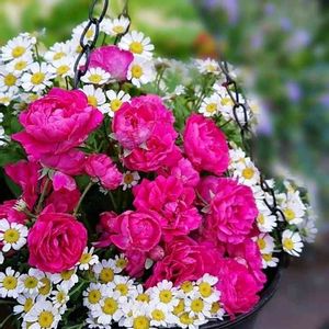 キングローズの花がら切り終了🎵 何とかまだ見られそうなのを集めてマトリカリアと🎵 welcome🎵
