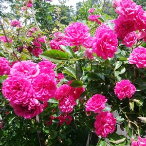 こんにちは! 朝から、トマトの支柱立てなどをやって忙しくしてます! 25年前くらいからある、名前が判らないつる薔薇です!棘が無くて3cmくらいの花が沢山咲きます!モッコウ薔薇を赤くしたような感じです! 今シーズンの薔薇は、終わりと言ってましたがこの子は、今が盛りです!