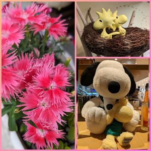 🏷毎月2日はスヌーピーの日に参加します🤗💕 今回は、庭に咲いている🩷レース咲きナデシコ🩷とお出かけ先で出会ったウッドストックとスヌーピーとのコラージュにしてみました🥰💞 ・ウッドストックはスヌーピー茶屋入り口に飾られていたものです🤚 ・スヌーピーは夏頃、スターバックス店内に飾られていたものです🤚 🏷毎月2日はスヌーピーの日 🏷チームスヌー 🏷チームスヌー会員番号34番