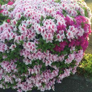 2018.4.21撮影 群馬県館林市の「つつじが岡公園」にて🎵 二重で小輪の花が株全体を覆うように咲いていて、桜の花のようです🌸