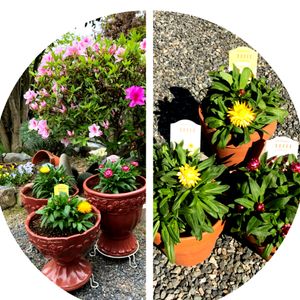 コロロ cololo 3色 レモン🍋・マンゴー・フランボワーズ 素焼5号鉢からFRP8号鉢へ植え替えました。 FRP鉢がアンティーク調とはいえ白だから我が家の庭には余り不似合いなので ラコッタ調にと思い色を塗ったら 色は濃いしツヤが出てしまい失敗…💦 でも、FRP鉢は軽くて楽ちん❣️