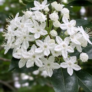カマツカ(鎌柄) バラ科.落葉小高木 花期…4月~5月 お花の大きさ…1㌢程 全国に分布 樹高…5~7㍍ 名前の由来は 丈夫な材を鎌の柄に 用いたことによります。 強硬な名前だけど お花も蕾も可愛いくて 優しげです🤍** 6月5日.英彦山で🤳