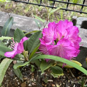 シャクナゲです。西洋種です。 自然大好き派😘、兼園芸もやっています派です。 鉢が大きくなりすぎて植替えが大変になり、しかも大きな鉢の置き場所が無いので敢えて陽当たりのよくない裏庭に移植しました。 陽当たりが悪い割にはまあまあ沢山花を付けてくれます。 高い山で見る程の感激🤩はありませんが、まあ汗💦をかかずに見ているのでしょうがありません。