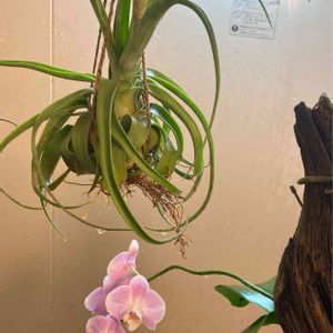 流木付けコチョウラン3つ目の花も咲きました。流木付けの蘭やチランジアはみんなお風呂場で朝まで過ごします。キセログラフィカなどには湿度が高すぎるかも。 ウンベラータ、ベゴニア・タイガーも一緒です。🤗