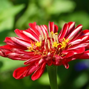 ジニア[百日草] (キク科) 原産地 メキシコ🇲🇽 長い期間咲き続けるところから、この和名がついたようです。 茎の先端に単独の頭状花序をつけます。外側の舌状花花弁の基部に雌しべが、中央に管状花が見分けられます👀 大船フラワーセンターにて撮影📷
